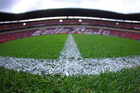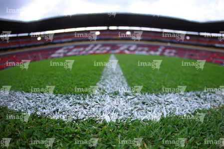 Guadalajara, Jalisco, 11 de abril de 2026. Detalle del césped del estadio Jalisco, durante el partido correspondiente a la jornada 14 del torneo Clausura 2026 de la Liga BBVA MX, entre los Rojinegros del Atlas y los Rayados del Monterrey, realizado en el estadio Jalisco. Foto: Imago7/ Juan Carlos Cubeyro.