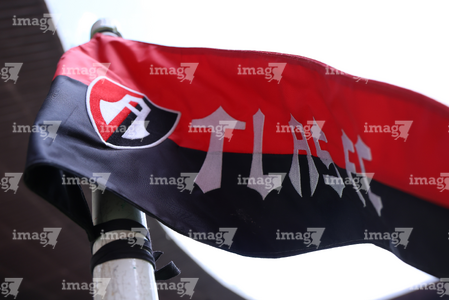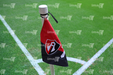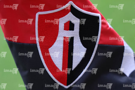 Guadalajara, Jalisco, 11 de abril de 2026. Banderín con escudo de Atlas, durante el partido correspondiente a la jornada 14 del torneo Clausura 2026 de la Liga BBVA MX, entre los Rojinegros del Atlas y los Rayados del Monterrey, realizado en el estadio Jalisco. Foto: Imago7/ Juan Carlos Cubeyro.