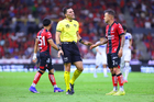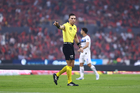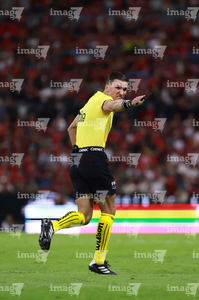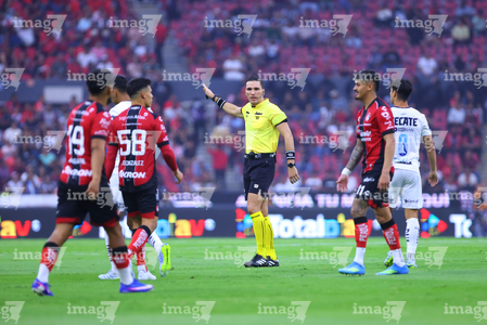 Guadalajara, Jalisco, 11 de abril de 2026. Yonatan Peinado Aguirre, árbitro central, durante el partido correspondiente a la jornada 14 del torneo Clausura 2026 de la Liga BBVA MX, entre los Rojinegros del Atlas y los Rayados del Monterrey, realizado en el estadio Jalisco. Foto: Imago7/ Juan Carlos Cubeyro.