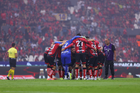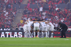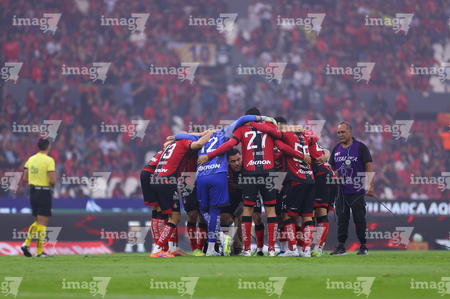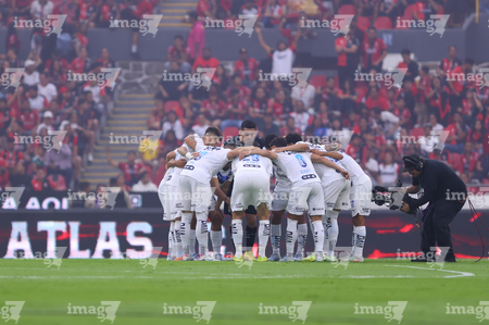 Guadalajara, Jalisco, 11 de abril de 2026. Jugadores del Atlas, durante el partido correspondiente a la jornada 14 del torneo Clausura 2026 de la Liga BBVA MX, entre los Rojinegros del Atlas y los Rayados del Monterrey, realizado en el estadio Jalisco. Foto: Imago7/ Cristian Hernández