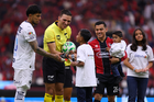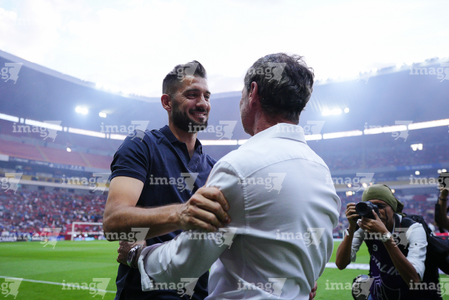 Guadalajara, Jalisco, 11 de abril de 2026. Protocolo, durante el partido correspondiente a la jornada 14 del torneo Clausura 2026 de la Liga BBVA MX, entre los Rojinegros del Atlas y los Rayados del Monterrey, realizado en el estadio Jalisco. Foto: Imago7/ Alejandro Lias