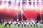 Guadalajara, Jalisco, 11 de abril de 2026. Protocolo, durante el partido correspondiente a la jornada 14 del torneo Clausura 2026 de la Liga BBVA MX, entre los Rojinegros del Atlas y los Rayados del Monterrey, realizado en el estadio Jalisco. Foto: Imago7/ Cristian Hernández