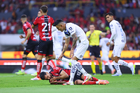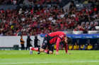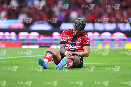 Guadalajara, Jalisco, 11 de abril de 2026. Luca Orellano resultó lesionado, durante el partido correspondiente a la jornada 14 del torneo Clausura 2026 de la Liga BBVA MX, entre los Rojinegros del Atlas y los Rayados del Monterrey, realizado en el estadio Jalisco. Foto: Imago7/ Hugo Ramirez