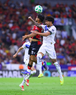 Guadalajara, Jalisco, 11 de abril de 2026. Uros Durdevic y Luis Gamboa, durante el partido correspondiente a la jornada 14 del torneo Clausura 2026 de la Liga BBVA MX, entre los Rojinegros del Atlas y los Rayados del Monterrey, realizado en el estadio Jalisco. Foto: Imago7/ Juan Carlos Cubeyro.