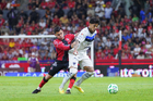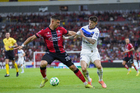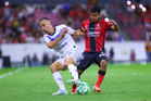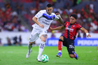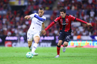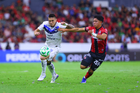 Guadalajara, Jalisco, 11 de abril de 2026. Sergio Canales y Gustavo Ferrareis, durante el partido correspondiente a la jornada 14 del torneo Clausura 2026 de la Liga BBVA MX, entre los Rojinegros del Atlas y los Rayados del Monterrey, realizado en el estadio Jalisco. Foto: Imago7/ Juan Carlos Cubeyro.