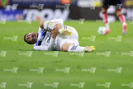 Guadalajara, Jalisco, 11 de abril de 2026. Lucas Ocampos resultó lesionado, durante el partido correspondiente a la jornada 14 del torneo Clausura 2026 de la Liga BBVA MX, entre los Rojinegros del Atlas y los Rayados del Monterrey, realizado en el estadio Jalisco. Foto: Imago7/Cristian Hernandez