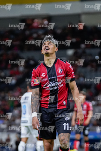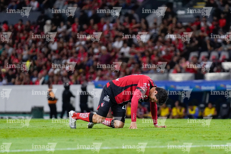 Guadalajara, Jalisco, 11 de abril de 2026. Diego González en lamento, durante el partido correspondiente a la jornada 14 del torneo Clausura 2026 de la Liga BBVA MX, entre los Rojinegros del Atlas y los Rayados del Monterrey, realizado en el estadio Jalisco. Foto: Imago7/ Alejandro Lias