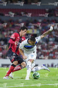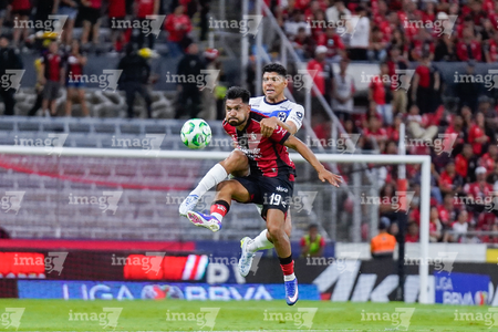Guadalajara, Jalisco, 11 de abril de 2026. Fidel Ambríz y Diego González, durante el partido correspondiente a la jornada 14 del torneo Clausura 2026 de la Liga BBVA MX, entre los Rojinegros del Atlas y los Rayados del Monterrey, realizado en el estadio Jalisco. Foto: Imago7/ Juan Carlos Cubeyro.