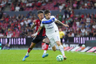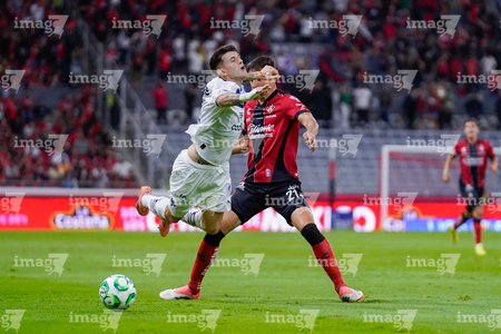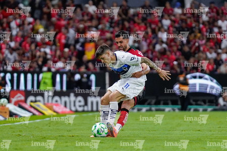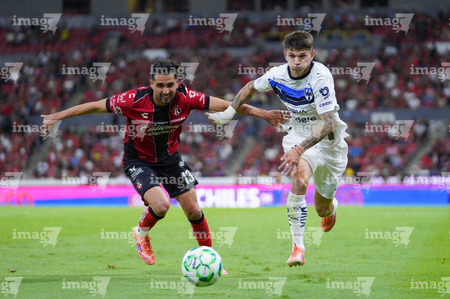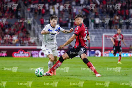 Guadalajara, Jalisco, 11 de abril de 2026. Manuel Capasso y Luca Orellano, durante el partido correspondiente a la jornada 14 del torneo Clausura 2026 de la Liga BBVA MX, entre los Rojinegros del Atlas y los Rayados del Monterrey, realizado en el estadio Jalisco. Foto: Imago7/ Hugo Ramirez