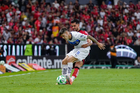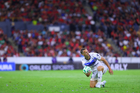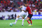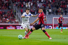 Guadalajara, Jalisco, 11 de abril de 2026. Luca Orellano, durante el partido correspondiente a la jornada 14 del torneo Clausura 2026 de la Liga BBVA MX, entre los Rojinegros del Atlas y los Rayados del Monterrey, realizado en el estadio Jalisco. Foto: Imago7/ Hugo Ramirez