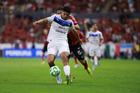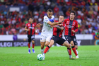 Guadalajara, Jalisco, 11 de abril de 2026. Lucas Ocampos, durante el partido correspondiente a la jornada 14 del torneo Clausura 2026 de la Liga BBVA MX, entre los Rojinegros del Atlas y los Rayados del Monterrey, realizado en el estadio Jalisco. Foto: Imago7/ Hugo Ramirez