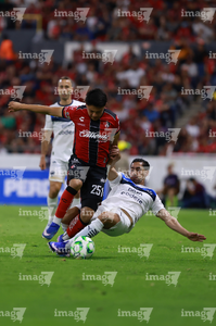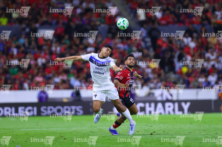 Guadalajara, Jalisco, 11 de abril de 2026. Eduardo Aguirre y Carlos Salcedo, durante el partido correspondiente a la jornada 14 del torneo Clausura 2026 de la Liga BBVA MX, entre los Rojinegros del Atlas y los Rayados del Monterrey, realizado en el estadio Jalisco. Foto: Imago7/ Juan Carlos Cubeyro.