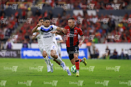 Guadalajara, Jalisco, 11 de abril de 2026. Carlos Salcedo y Eduardo Aguirre, durante el partido correspondiente a la jornada 14 del torneo Clausura 2026 de la Liga BBVA MX, entre los Rojinegros del Atlas y los Rayados del Monterrey, realizado en el estadio Jalisco. Foto: Imago7/ Alejandro Lias