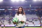 Pachuca, Hidalgo, 11 de abril de 2026. Embajadora, durante el partido correspondiente a la jornada 14 del torneo Clausura 2026 de la Liga BBVA MX, entre los Tuzos del Pachuca y los Guerreros de Santos Laguna, realizado en el estadio Hidalgo. Foto: Imago7/ Elizabeth Hernández