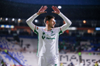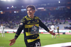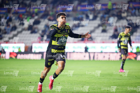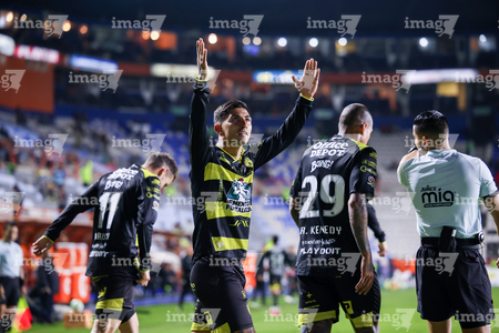 Pachuca, Hidalgo, 11 de abril de 2026. Robert Kenedy en festejo, durante el partido correspondiente a la jornada 14 del torneo Clausura 2026 de la Liga BBVA MX, entre los Tuzos del Pachuca y los Guerreros de Santos Laguna, realizado en el estadio Hidalgo. Foto: Imago7/ Alexis Chavez