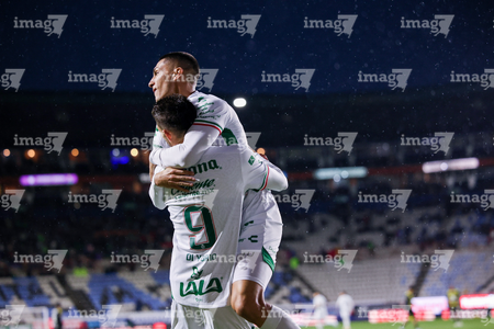 Pachuca, Hidalgo, 11 de abril de 2026. Lucas Di Yorio y Ezequiel Bullaude en festejo de gol, durante el partido correspondiente a la jornada 14 del torneo Clausura 2026 de la Liga BBVA MX, entre los Tuzos del Pachuca y los Guerreros de Santos Laguna, realizado en el estadio Hidalgo. Foto: Imago7/ Elizabeth Hernández