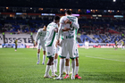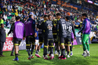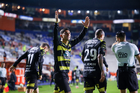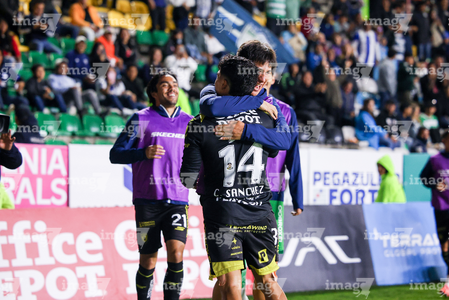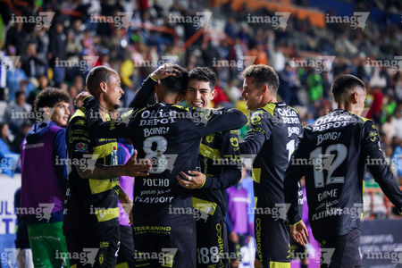 Pachuca, Hidalgo, 11 de abril de 2026. Jugadores de Pachuca en festejo de gol, durante el partido correspondiente a la jornada 14 del torneo Clausura 2026 de la Liga BBVA MX, entre los Tuzos del Pachuca y los Guerreros de Santos Laguna, realizado en el estadio Hidalgo. Foto: Imago7/ Elizabeth Hernández