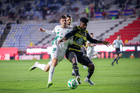 Pachuca, Hidalgo, 11 de abril de 2026. Nelson Cedillo y Salomón Rondon, durante el partido correspondiente a la jornada 14 del torneo Clausura 2026 de la Liga BBVA MX, entre los Tuzos del Pachuca y los Guerreros de Santos Laguna, realizado en el estadio Hidalgo. Foto: Imago7/ Alexis Chavez