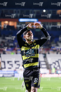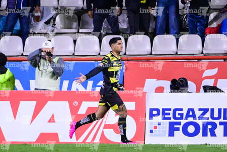 Pachuca, Hidalgo, 11 de abril de 2026. Lucas Di Yorio en festejo de gol, durante el partido correspondiente a la jornada 14 del torneo Clausura 2026 de la Liga BBVA MX, entre los Tuzos del Pachuca y los Guerreros de Santos Laguna, realizado en el estadio Hidalgo. Foto: Imago7/ Elizabeth Hernández
