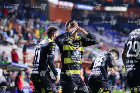 Pachuca, Hidalgo, 11 de abril de 2026. Víctor Guzmán en festejo de gol, durante el partido correspondiente a la jornada 14 del torneo Clausura 2026 de la Liga BBVA MX, entre los Tuzos del Pachuca y los Guerreros de Santos Laguna, realizado en el estadio Hidalgo. Foto: Imago7/ Elizabeth Hernández