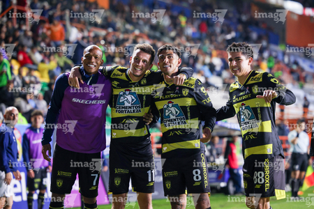 Pachuca, Hidalgo, 11 de abril de 2026. Luis Quiñones, Oussama Idrissi, Víctor Guzmán y Sergio Rodríguez en festejo de gol, durante el partido correspondiente a la jornada 14 del torneo Clausura 2026 de la Liga BBVA MX, entre los Tuzos del Pachuca y los Guerreros de Santos Laguna, realizado en el estadio Hidalgo. Foto: Imago7/ Elizabeth Hernández