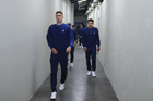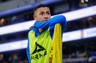 Ciudad de México, 11 de abril de 2026. Jonathan Dos Santos entregó un reconocimiento a Arlindo Dos Santos, durante el partido correspondiente a la jornada 14 del torneo Clausura 2026 de la Liga BBVA MX, entre las Águilas del América y la Máquina Celeste del Cruz Azul, realizado en el estadio Banorte. Foto: Imago7/Carlos Vargas