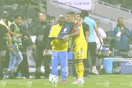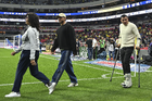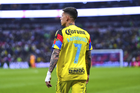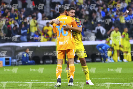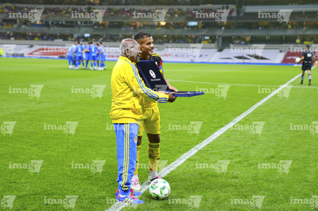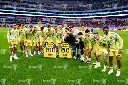 Ciudad de México, 11 de abril de 2026. Sebastián Cáceres y Jonathan Dos Santos recibieron reconocimientos por 200 y 150 partidos respectivamente, durante el partido correspondiente a la jornada 14 del torneo Clausura 2026 de la Liga BBVA MX, entre las Águilas del América y la Máquina Celeste del Cruz Azul, realizado en el estadio Banorte. Foto: Imago7/Manlio Contreras Reyes
