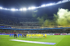 Ciudad de México, 11 de abril de 2026. Protocolo, durante el partido correspondiente a la jornada 14 del torneo Clausura 2026 de la Liga BBVA MX, entre las Águilas del América y la Máquina Celeste del Cruz Azul, realizado en el estadio Banorte. Foto: Imago7/ Diego Padilla