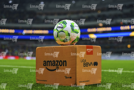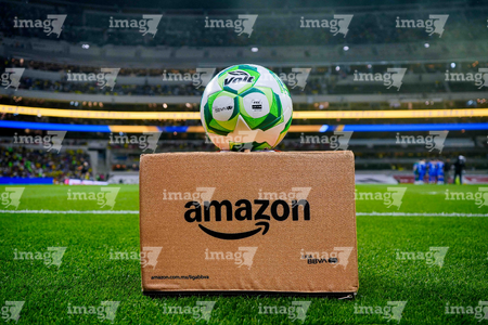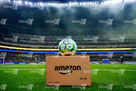 Ciudad de México, 11 de abril de 2026. Balón de futbol Voit Aereus sobre caja de Amazon, durante el partido correspondiente a la jornada 14 del torneo Clausura 2026 de la Liga BBVA MX, entre las Águilas del América y la Máquina Celeste del Cruz Azul, realizado en el estadio Banorte. Foto: Imago7/ Diego Padilla
