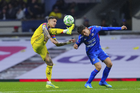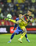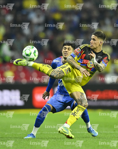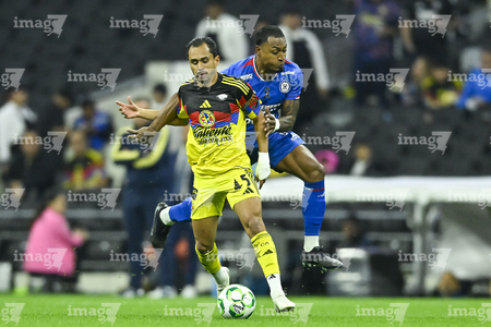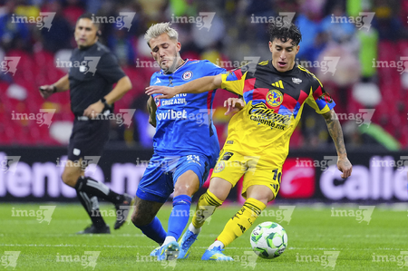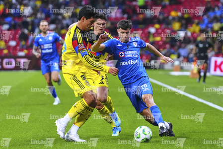 Ciudad de México, 11 de abril de 2026. Brian Rodríguez y Erik Lira, durante el partido correspondiente a la jornada 14 del torneo Clausura 2026 de la Liga BBVA MX, entre las Águilas del América y la Máquina Celeste del Cruz Azul, realizado en el estadio Banorte. Foto: Imago7/Etzel Espinosa