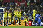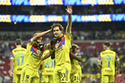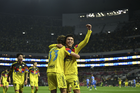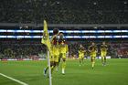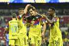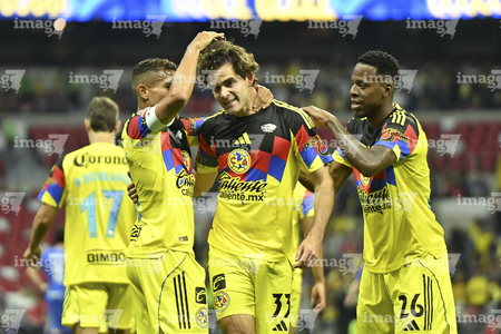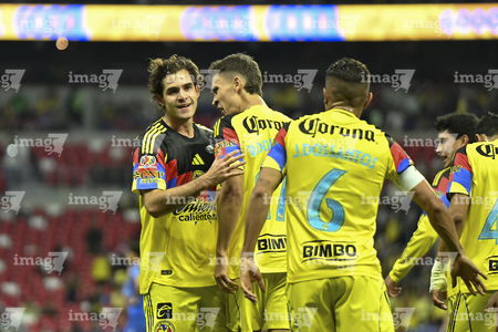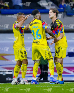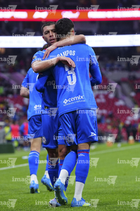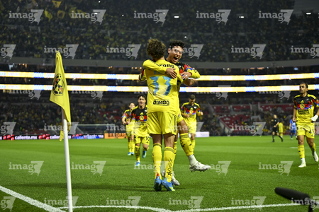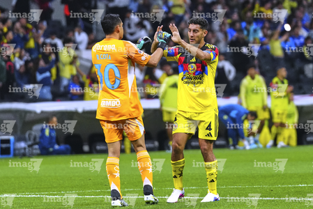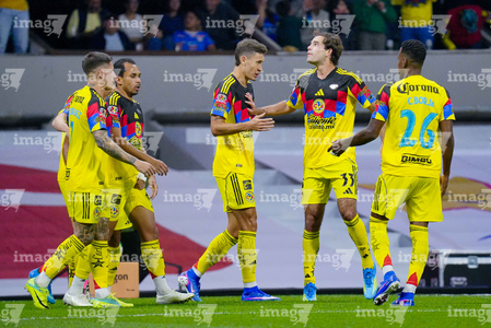 Ciudad de México, 11 de abril de 2026. Rodolfo Cota y Sebastián Cáceres en festejo, durante el partido correspondiente a la jornada 14 del torneo Clausura 2026 de la Liga BBVA MX, entre las Águilas del América y la Máquina Celeste del Cruz Azul, realizado en el estadio Banorte. Foto: Imago7/Carlos Vargas