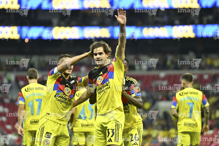 Ciudad de México, 11 de abril de 2026. Omar Campos en festejo de gol, durante el partido correspondiente a la jornada 14 del torneo Clausura 2026 de la Liga BBVA MX, entre las Águilas del América y la Máquina Celeste del Cruz Azul, realizado en el estadio Banorte. Foto: Imago7/Manlio Contreras Reyes