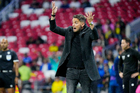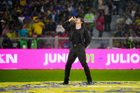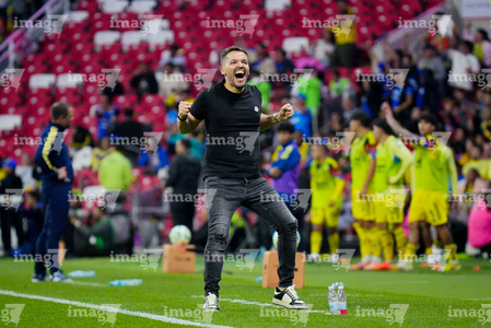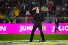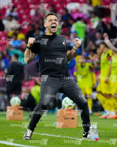 Ciudad de México, 11 de abril de 2026. Nicolás Larcamón, director técnico en festejo de gol, durante el partido correspondiente a la jornada 14 del torneo Clausura 2026 de la Liga BBVA MX, entre las Águilas del América y la Máquina Celeste del Cruz Azul, realizado en el estadio Banorte. Foto: Imago7/Diego Padilla