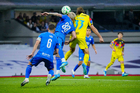 Ciudad de México, 11 de abril de 2026. Brian Rodríguez y Jorge Rodarte, durante el partido correspondiente a la jornada 14 del torneo Clausura 2026 de la Liga BBVA MX, entre las Águilas del América y la Máquina Celeste del Cruz Azul, realizado en el estadio Banorte. Foto: Imago7/Manlio Contreras Reyes