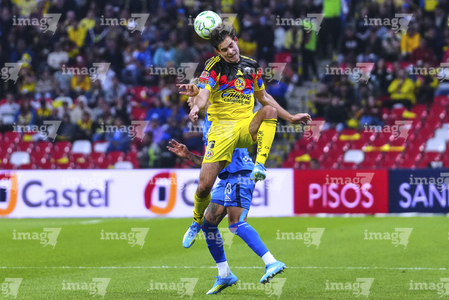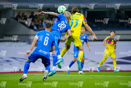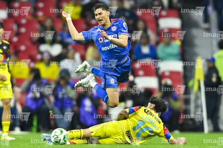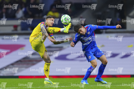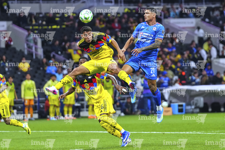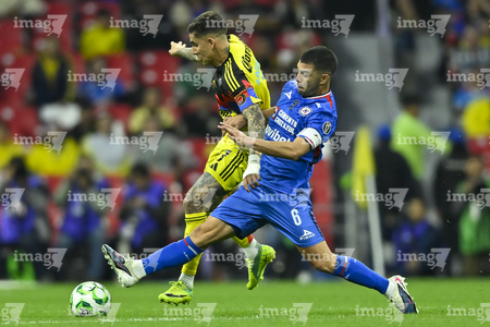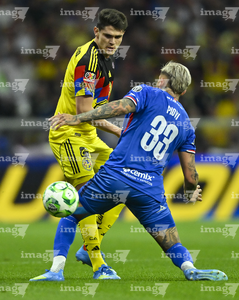 Ciudad de México, 11 de abril de 2026. Erik Lira y Patricio Salas, durante el partido correspondiente a la jornada 14 del torneo Clausura 2026 de la Liga BBVA MX, entre las Águilas del América y la Máquina Celeste del Cruz Azul, realizado en el estadio Banorte. Foto: Imago7/Diego Padilla