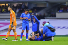 Ciudad de México, 11 de abril de 2026. Nicolás Ibañez resultó lesionado, durante el partido correspondiente a la jornada 14 del torneo Clausura 2026 de la Liga BBVA MX, entre las Águilas del América y la Máquina Celeste del Cruz Azul, realizado en el estadio Banorte. Foto: Imago7/Diego Padilla