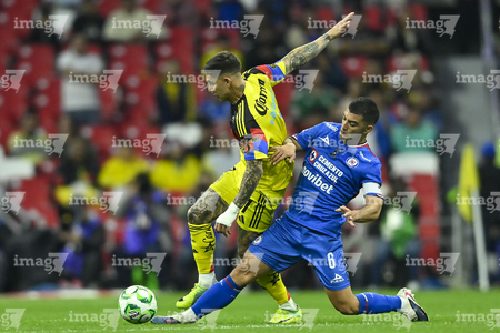 Ciudad de México, 11 de abril de 2026. Sebastián Cáceres y Nicolás Ibáñez, durante el partido correspondiente a la jornada 14 del torneo Clausura 2026 de la Liga BBVA MX, entre las Águilas del América y la Máquina Celeste del Cruz Azul, realizado en el estadio Banorte. Foto: Imago7/Etzel Espinosa