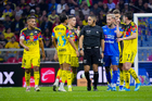 Ciudad de México, 11 de abril de 2026. Jugadores del Club América en reclamo a Óscar Macías árbitro central, durante el partido correspondiente a la jornada 14 del torneo Clausura 2026 de la Liga BBVA MX, entre las Águilas del América y la Máquina Celeste del Cruz Azul, realizado en el estadio Banorte. Foto: Imago7 / Diego Padilla