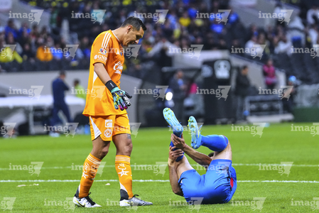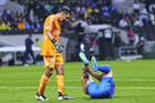 Ciudad de México, 11 de abril de 2026. Rodolfo Cota y Nicolás Ibáñez quien resultó lesionado, durante el partido correspondiente a la jornada 14 del torneo Clausura 2026 de la Liga BBVA MX, entre las Águilas del América y la Máquina Celeste del Cruz Azul, realizado en el estadio Banorte. Foto: Imago7/Carlos Vargas
