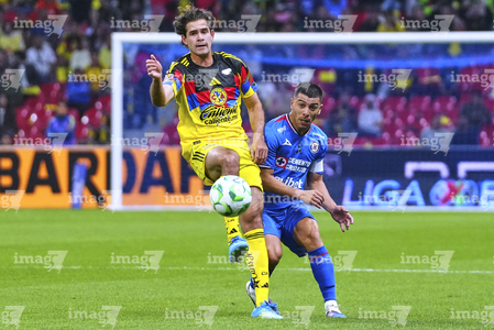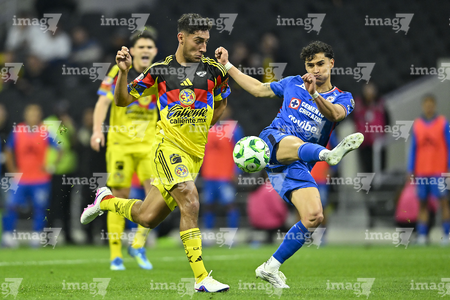 Ciudad de México, 11 de abril de 2026. Rodolfo Rotondi y Alejandro Zendejas, durante el partido correspondiente a la jornada 14 del torneo Clausura 2026 de la Liga BBVA MX, entre las Águilas del América y la Máquina Celeste del Cruz Azul, realizado en el estadio Banorte. Foto: Imago7/Etzel Espinosa