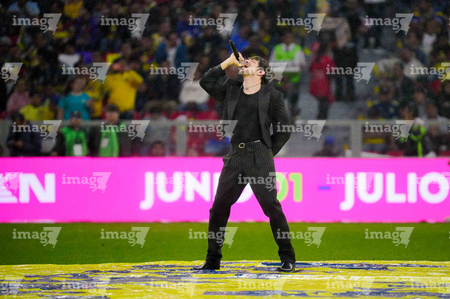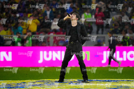 Ciudad de México, 11 de abril de 2026. El cantante Lasso, durante el partido correspondiente a la jornada 14 del torneo Clausura 2026 de la Liga BBVA MX, entre las Águilas del América y la Máquina Celeste del Cruz Azul, realizado en el estadio Banorte. Foto: Imago7/Diego Padilla