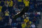 Ciudad de México, 11 de abril de 2026. Celeste, mascota del Club América, durante el partido correspondiente a la jornada 14 del torneo Clausura 2026 de la Liga BBVA MX, entre las Águilas del América y la Máquina Celeste del Cruz Azul, realizado en el estadio Banorte. Foto: Imago7/Diego Padilla