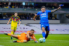Ciudad de México, 11 de abril de 2026. Patricio Salas anota gol, durante el partido correspondiente a la jornada 14 del torneo Clausura 2026 de la Liga BBVA MX, entre las Águilas del América y la Máquina Celeste del Cruz Azul, realizado en el estadio Banorte. Foto: Imago7 / Diego Padilla