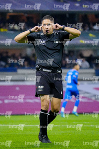 Ciudad de México, 11 de abril de 2026. Oscar Mejía García, árbitro central, durante el partido correspondiente a la jornada 14 del torneo Clausura 2026 de la Liga BBVA MX, entre las Águilas del América y la Máquina Celeste del Cruz Azul, realizado en el estadio Banorte. Foto: Imago7/Carlos Vargas
