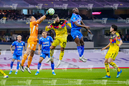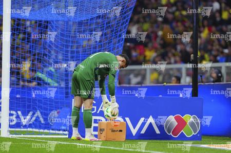Ciudad de México, 11 de abril de 2026. Andrés Gudiño toma Balón de futbol Voit Aereus de caja de Amazon, durante el partido correspondiente a la jornada 14 del torneo Clausura 2026 de la Liga BBVA MX, entre las Águilas del América y la Máquina Celeste del Cruz Azul, realizado en el estadio Banorte. Foto: Imago7/Manlio Contreras Reyes
