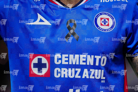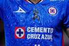 Ciudad de México, 11 de abril de 2026. Parche de moño negro en uniforme de Cruz Azul por el fallecimiento de la madre del Ingeniero Víctor Velazquez, durante el partido correspondiente a la jornada 14 del torneo Clausura 2026 de la Liga BBVA MX, entre las Águilas del América y la Máquina Celeste del Cruz Azul, realizado en el estadio Banorte. Foto: Imago7/Diego Padilla