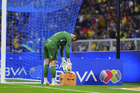 Ciudad de México, 11 de abril de 2026. Andrés Gudiño toma Balón de futbol Voit Aereus de caja de Amazon, durante el partido correspondiente a la jornada 14 del torneo Clausura 2026 de la Liga BBVA MX, entre las Águilas del América y la Máquina Celeste del Cruz Azul, realizado en el estadio Banorte. Foto: Imago7/Etzel Espinosa