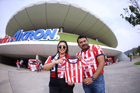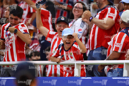 Zapopan, Jalisco, 18 de abril de 2026. Afición en festejo, durante el partido correspondiente a la jornada 15 del torneo Clausura 2026 de la Liga BBVA MX, entre las Chivas Rayadas del Guadalajara y el Club Puebla, realizado en el estadio Akron. Foto: Imago7/ Juan Carlos Cubeyro.