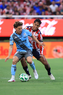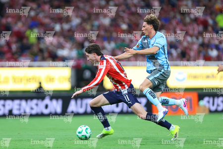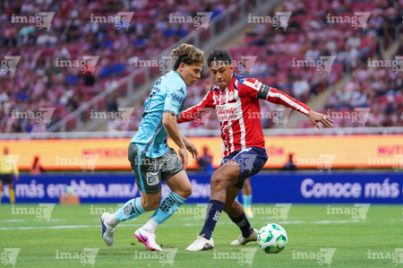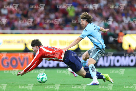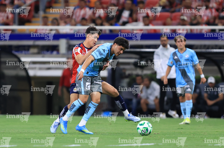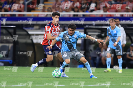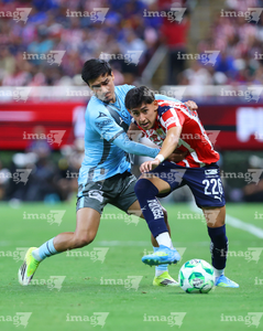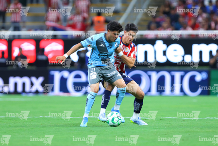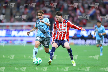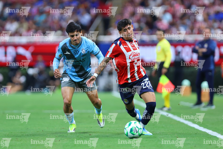 Zapopan, Jalisco, 18 de abril de 2026. Nicolás Díaz y Ricardo Marín, durante el partido correspondiente a la jornada 15 del torneo Clausura 2026 de la Liga BBVA MX, entre las Chivas Rayadas del Guadalajara y el Club Puebla, realizado en el estadio Akron. Foto: Imago7/ Juan Carlos Cubeyro.