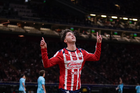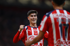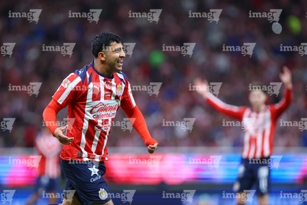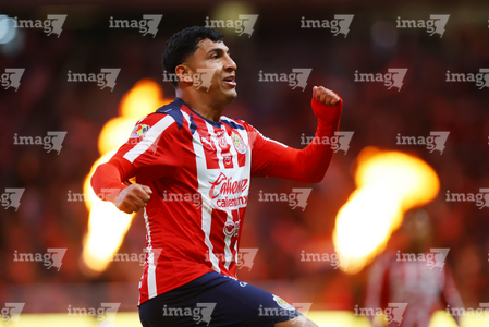 Zapopan, Jalisco, 18 de abril de 2026. Armando González en festejo, durante el partido correspondiente a la jornada 15 del torneo Clausura 2026 de la Liga BBVA MX, entre las Chivas Rayadas del Guadalajara y el Club Puebla, realizado en el estadio Akron. Foto: Imago7/ Juan Carlos Cubeyro.